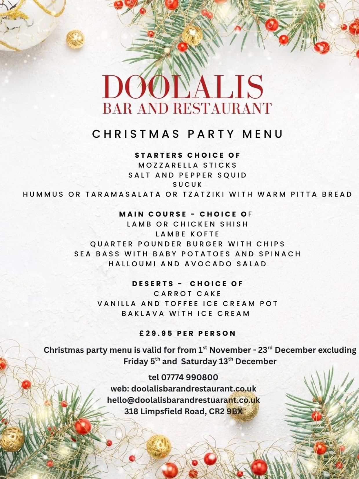 Host your next event at Doolalis Bar and Restaurant and enjoy our private event space, perfect for corporate events, birthdays, and other special occasions. We offer customized menus and a full bar to make your event unforgettable.